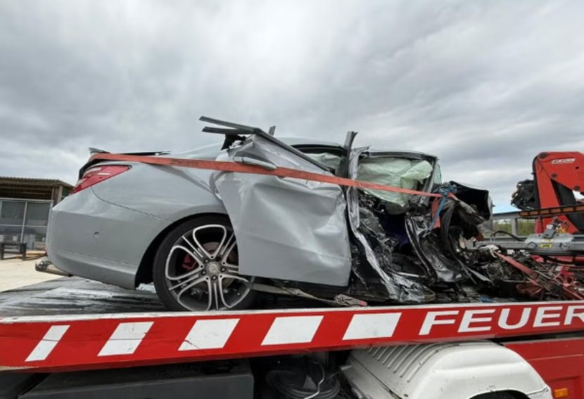 Automjet u hodh në të gjitha korsitë me një forcë të paimagjinueshme pas përplasjes dhe më pas u përplas me barrierën e mesit të betonit në të majtë. Makina më pas u ndal në korsinë e dytë – blloku i motorit u shkëput dhe fluturoi disa metra larg.
