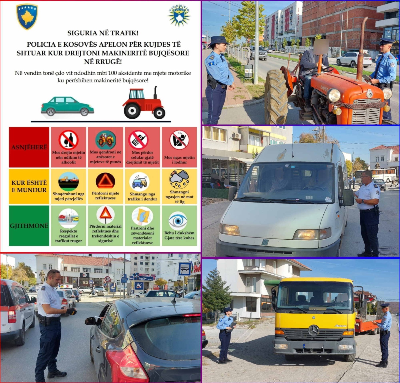 Njësiti Rajonal i Komunikacionit Rrugor po ashtu gjatë kësaj jave në kuadër të implementimit të Planit Operative ‘’Makineria bujqësore – Mjetet e punës’’ ka shqiptuar edhe katërmbëdhjetë (14) kundërvajtje ndaj vozitësve të mjeteve motorike bujqësore të cilët gjatë kontrollit kanë rezultuar se nuk janë duke qarkulluar konform rregullave të trafikut rrugor.