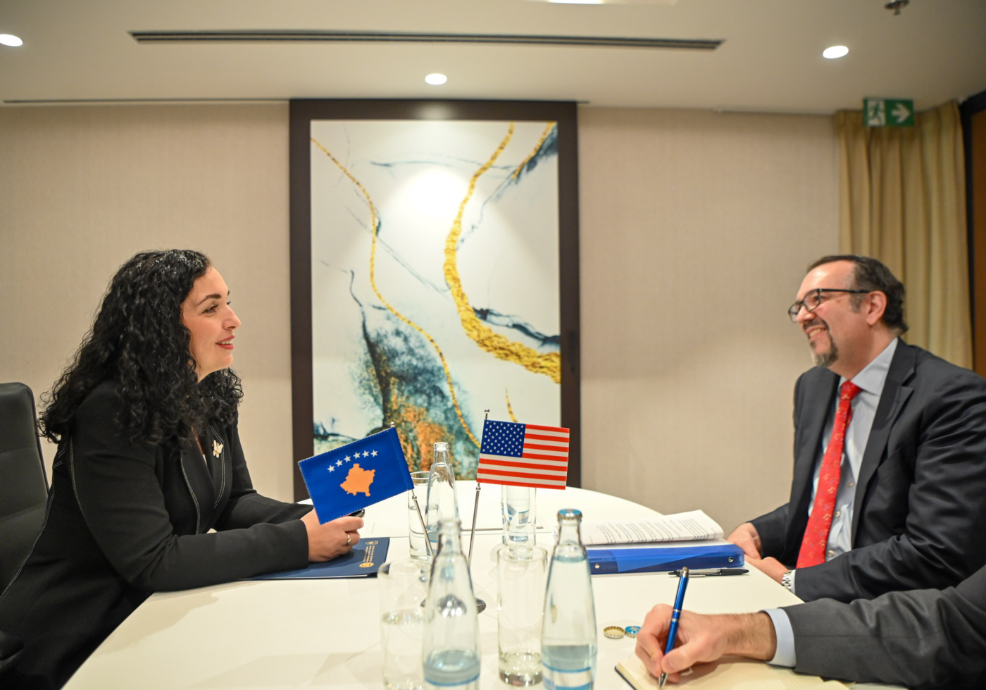 “Në Forumin GlobSec të Pragës sot DAS Alexander Kasanof dhe Presidenti Vjosa Osmani diskutuan për një numër çështjesh kyçe, përfshirë veprimet e pakoordinuara të së premtes nga Qeveria e Kosovës dhe rëndësinë e konsultimit me bashkësinë ndërkombëtare. Ne vlerësojmë përkushtimin e presidentes Osmani për koordinim të tillë, i cili është thelbësor për të avancuar trajektoren evropiane dhe euroatlantike të Kosovës dhe për të arritur stabilitetin rajonal, normalizimin dhe integrimin ekonomik. ShBA mbetet e përkushtuar për një Kosovë sovrane, multietnike, demokratike”, thuhet në reagimin e ambasadës amerikane”, thuhet në njoftimin e ambasadës amerikane./Arbresh.info/
