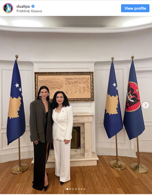 Presidentja e Kosovë, Vjosa Osmani ka nderuar dje këngëtaren shqiptare me famë botërore, Dua Lipa me titullin Ambasadore Nderi të Republikës së Kosovës.
