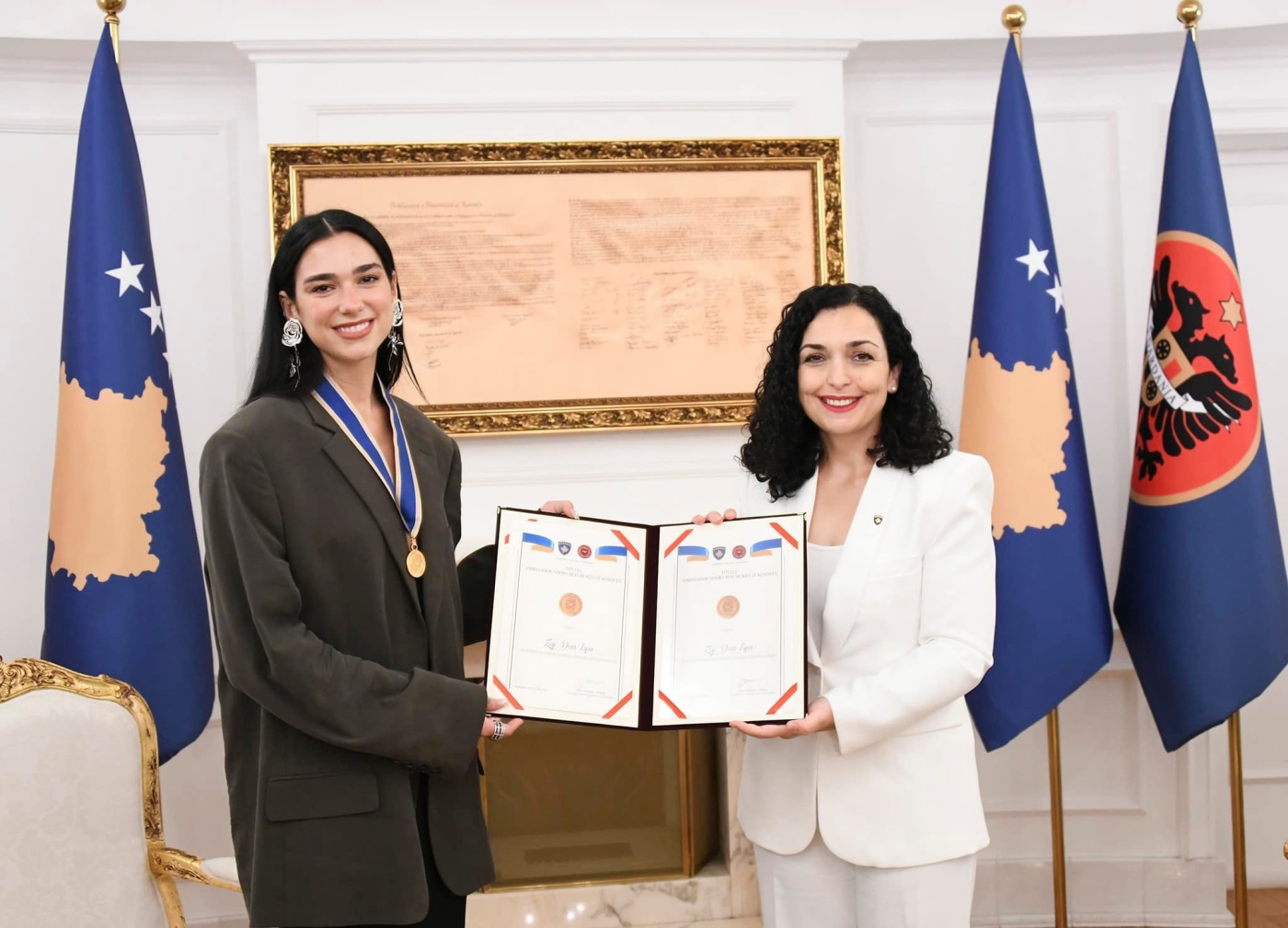 Presidentja e Kosovë, Vjosa Osmani ka nderuar dje këngëtaren shqiptare me famë botërore, Dua Lipa me titullin Ambasadore Nderi të Republikës së Kosovës.