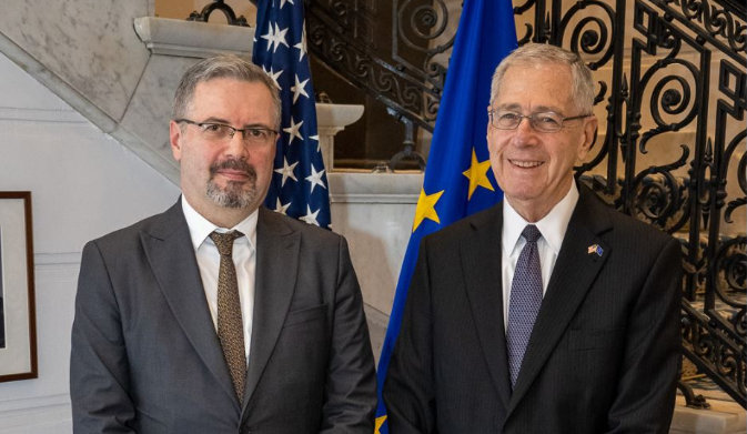 Ambasadori i Shteteve të Bashkuara të Amerikës në Bashkimin Evropian, Mark Gitenstein është takuar sot me ambasadorin e Kosovës në Bruksel, Agron Bajrami.