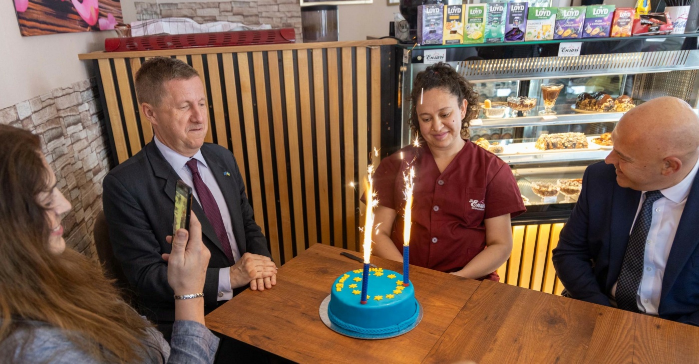 “Më tej, ambasadori Szunyog vizitoi bizneset e vogla lokale që kanë përfituar nga mbështetja e BE-së. Ai theksoi storjen e suksesit të ëmbëltores “Te Ensari”, një dyqan familjar i ngritur nga Vlora Kryeziu gjatë pandemisë COVID-19 në vitin 2021. I njohur për tortat e dasmave, ëmbëlsirat për festa dhe dekorimet e ngrënshme, dyqani është zgjeruar me ndihmën e BE-së, duke punësuar më shumë staf dhe duke tërhequr klientë si nga zonat lokale ashtu edhe nga ato fqinje. Kjo është ëmbëltorja e parë në lagje e themeluar nga një grua egjiptiane e Kosovës, duke shërbyer si një frymëzim për gratë e tjera ndërmarrëse të reja”, thuhet në njoftim.
