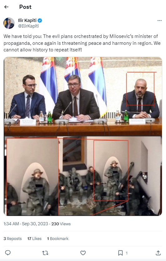 “Ju kemi thënë: Planet djallëzore të orkestruara nga ministri i propagandës së Millosheviqit, edhe një herë po kërcënojnë paqen dhe harmoninë në rajon. Nuk mund të lejojmë që historia të përsëritet!”, ka shkruar ai./Arbresh.info