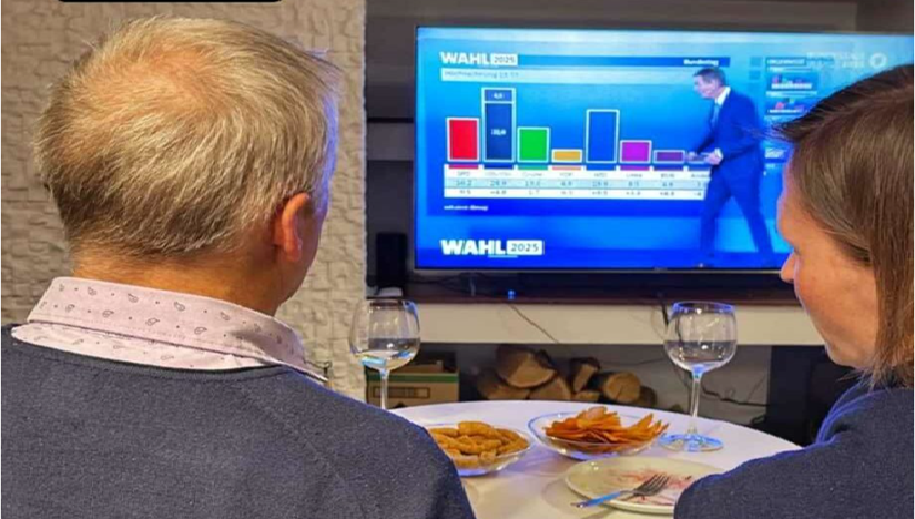 “Rezultatet e para të zgjedhjeve në Gjermani tregojnë se do të jetë një natë e gjatë dhe intensive para televizorit”, thuhet në mbishkrimin e fotografisë së publikuar.’