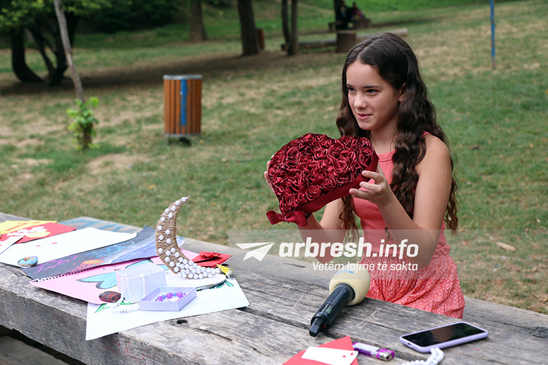 “Kryesisht në kohën e lirë bëjë gjëra të ndryshme, pikturojë aksesorët i bëjë vet, ndonjëherë me mamin. Prej kur kam qenë shumë e vogël kam fillu, jam merr me këto gjëra”, tha Amra.