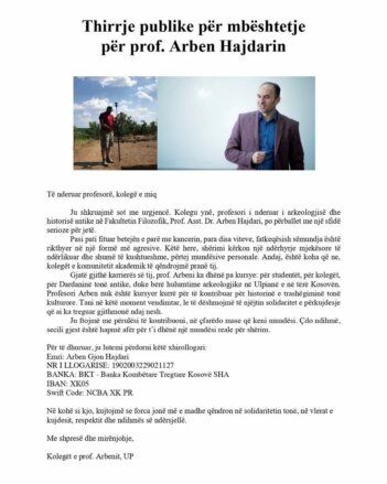 Profesori i Fakultetit Filozofik, Arben Hajdari, po përballet fatkeqësisht me një sfidë të rëndë për jetën. Atij i është rikthyer sëmundja e kancerit, kësaj radhe në një formë më agresive.