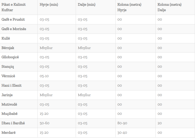 Sipas Qendrës Kombëtare për Menaxhim Kufitar, te pika kufitare Dheu i Bardhë janë krijuar kolona për të hyrë në vend e cila është e gjatë nga 80-90 metra dhe pritja është 50-60 minuta, ndërsa në pikën kufitare Merdar kjo kolonë është deri në 40 metra dhe pritja është 15-20 minuta.