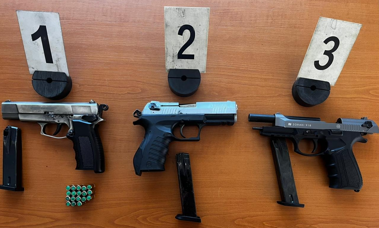 “Në zbatim të urdhër kontrollit të lëshuar nga Gjykata, janë gjetur dhe janë sekuestruar një armë e gjatë, tri pistoleta me nga një karikator dhe 22 copë fishekë.”, bën të ditur Policia.