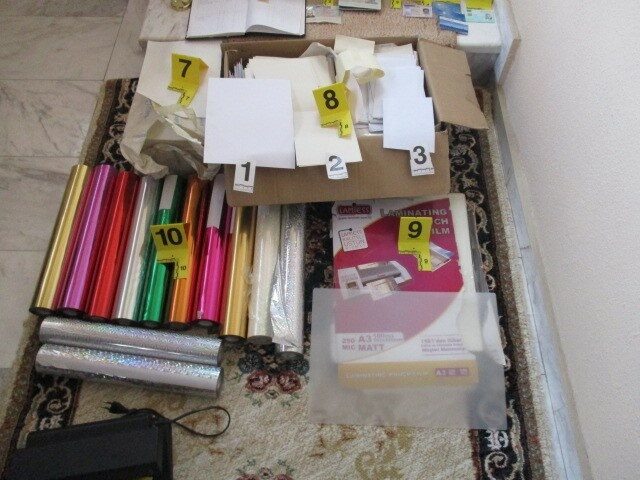 Pajisje dhe materiale te ndryshme elektronike që dyshohen për prodhimin e dokumenteve,