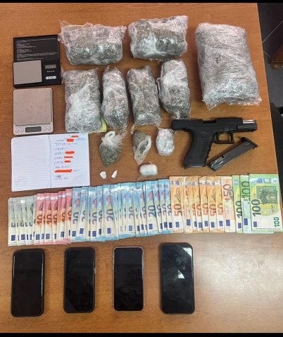 Gjatë kontrollit të personave dhe banesës të cilën e përdornin të dyshuarit, policia ka njoftuar se janë gjetur dhe konfiskuar:
