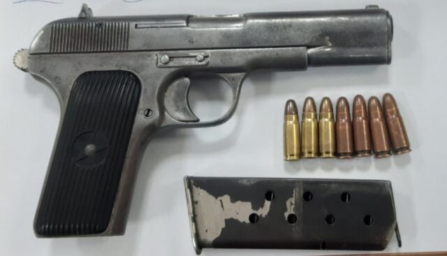 Siç njofton policia, sipas informatave, i dyshuari, së bashku me dy persona të tjerë, ndodhej në një vilë ku ishte vërejtur duke ekspozuar armën.