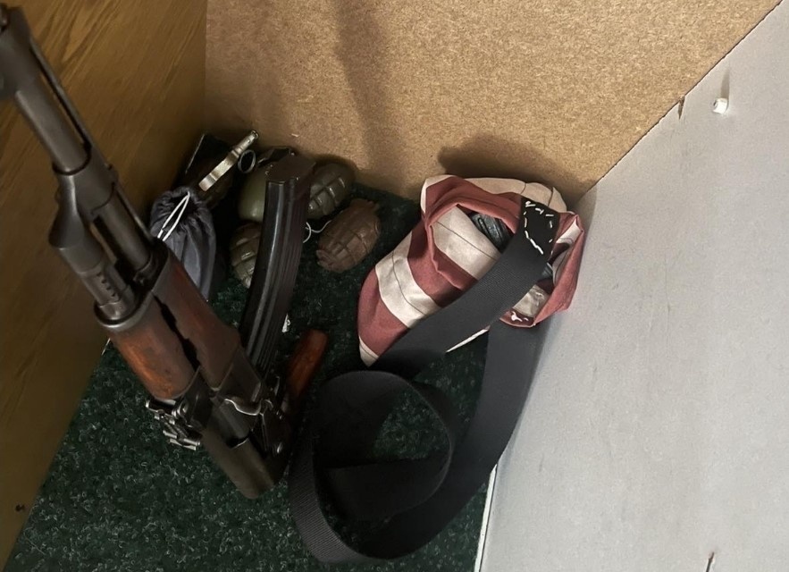 Gjatë kontrollit në posedim të tij është gjetur një pushkë automatike AK47 (e cila është konfiskuar si provë materiale) dhe disa granata dore.