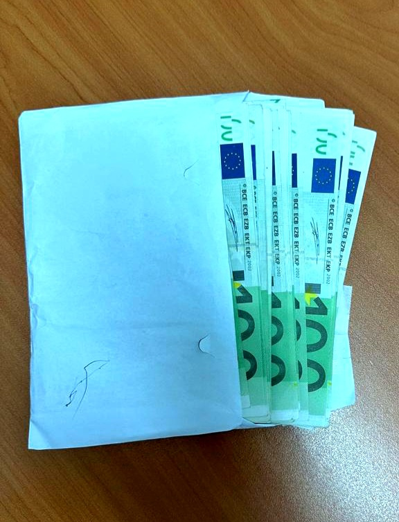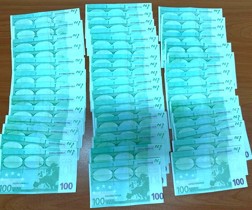 Tek e dyshuara, në çantën e saj janë gjetur: 47 kartëmonedha nga 100 € (gjithsejtë 4,700.00€), të cilat dyshohet se janë të falsifikuara si dhe një elektroshok.