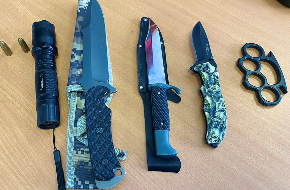 Siç thuhet në njoftim, të dyshuarit A.I., 38 vjeç i janë gjetur dhe sekuestruar tri thika, dy copë fishek si dhe gjësende të tjera.