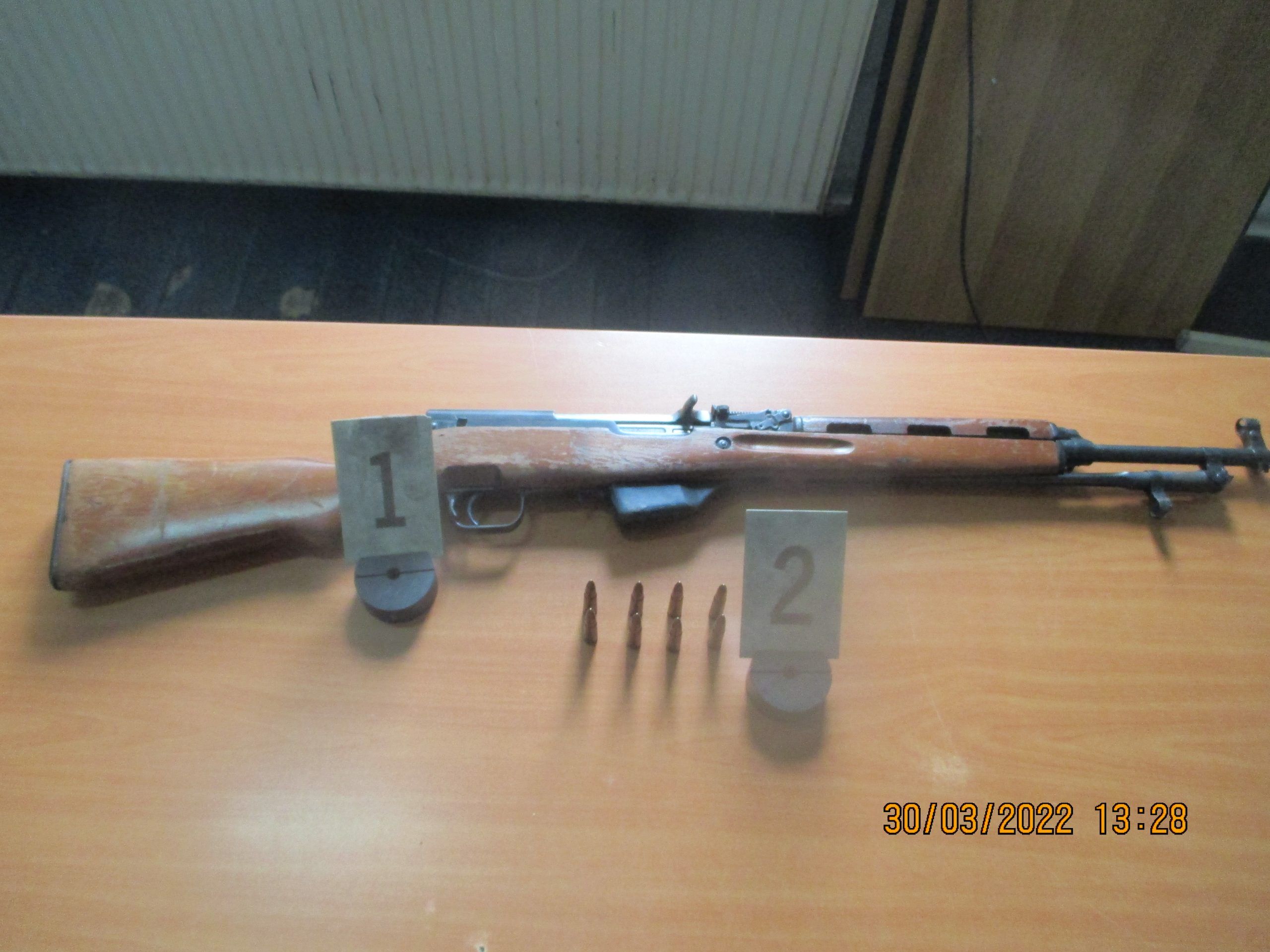 “Me aprovim të Gjykatës Themelore në Gjilan, është kontrolluar shtëpia e të dyshuarit me inicialet R.M.( M/K) i moshës rreth 46 vjeçar dhe aty janë gjetur: një armë zjarri pushkë gjysmë automatike me 8 copë fishekë, të cilat më pas janë konfiskuar”, thuhet në njoftimin e policisë.