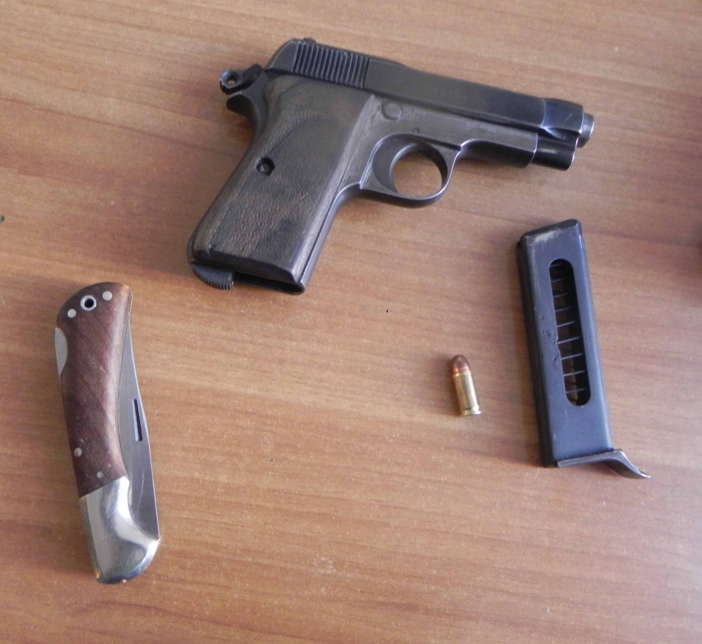 Gjatë kontrollimit tek i dyshuari nga zyrtarët policor është gjetur dhe konfiskuar një revole e tipit Gardinof e kalibrit 7.65 mm, një fishek i kalibrit 7.65 mm, një karikator dhe një brisk si dëshmi për gjykatën. I dyshuari pas arrestimit është intervistuar në prezencë të avokatit mbrojtës.