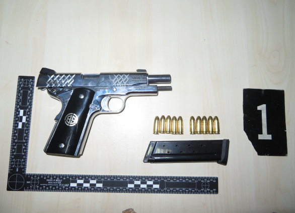 Siç thuhet në njoftim, të dyshuarit i është gjetur një armë pistoletё ADAM cal:9mm, një karikator i së njëjtës armë dhe 10 fishekë cal:9mm.