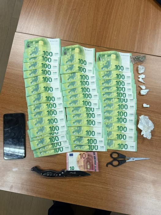 “Gjatë kontrollit të kryer, janë sekuestruar një sasi e substancave të dyshuara narkotike, një shumë e konsiderueshme e parave dhe një thikë”, njoftoi Policia.