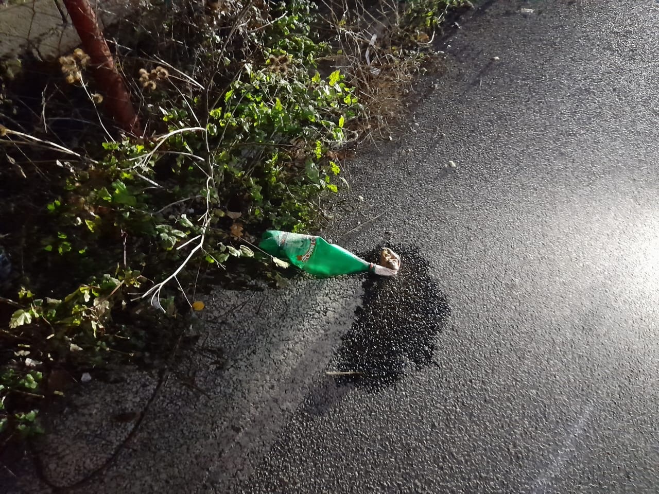 -Një shishe plastike e mbushur me benzinë e modifikuar si koktej molotovi dhe