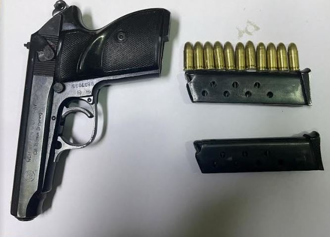 Gjatë kontrollimit të tij, i është gjetur një armë zjarri (pistoletë), dy karikatorë me 11 fishekë, të cilat më pas i janë konfiskuar.