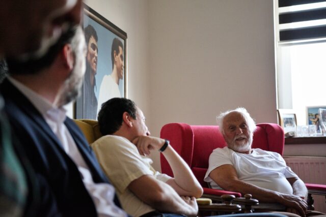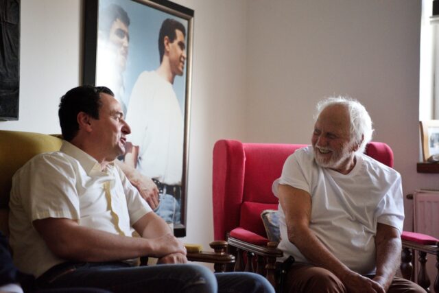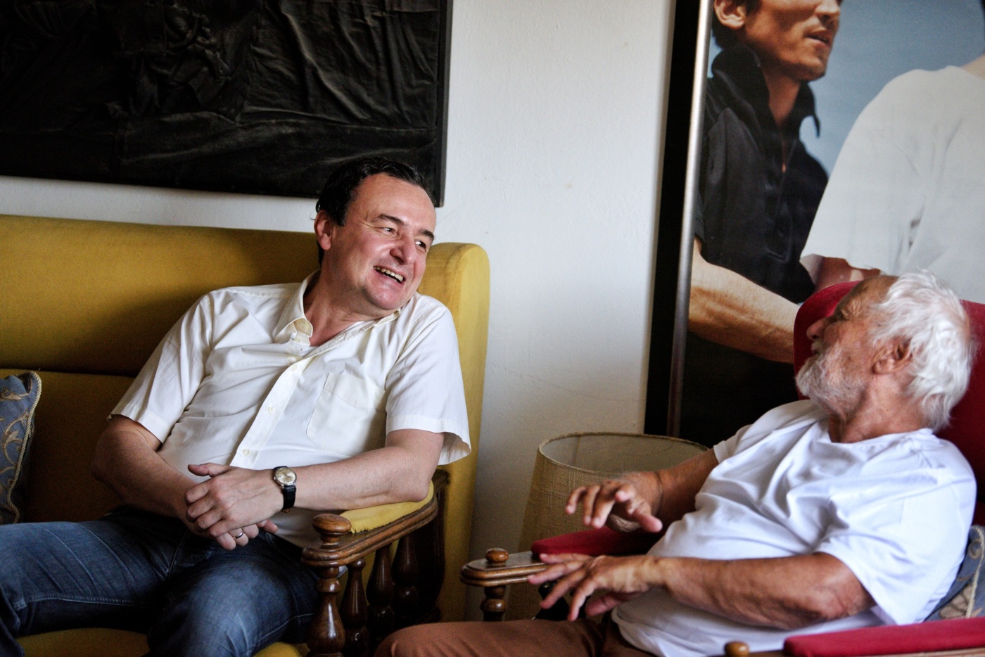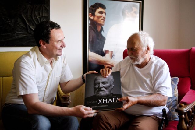 “Kështu filloi biseda jonë me të qeshura të shumta e me vrojtime nga e kaluara, veprat e artit dhe punët tona ditore, me artistin e madh Xhevdet Xhafa dhe me Ministrin e Kulturës, Hajrullaun”, shkroi Kurti, Arbresh.info.