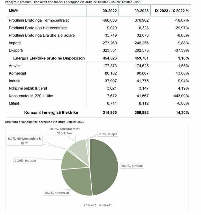 Gjatë muajit shtator të vitit 2023, energjia elektrike bruto në dispozicion ishte 459.78 GWh, kurse konsumi i energjisë elektrike ishte 359.99 GWh ose 14,3% më i madh, krahasuar me muajin e njëjtë të vitit paraprak (Shtator 2022).