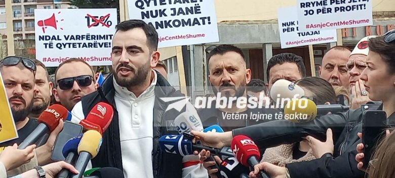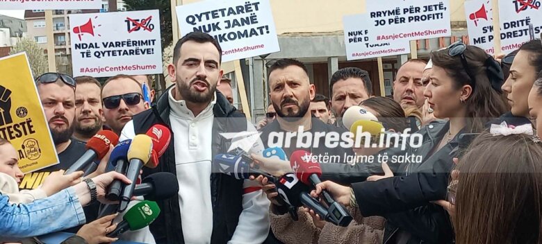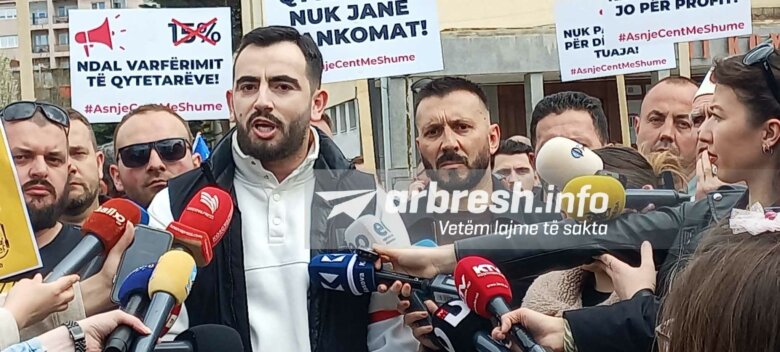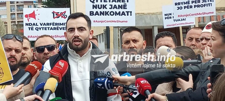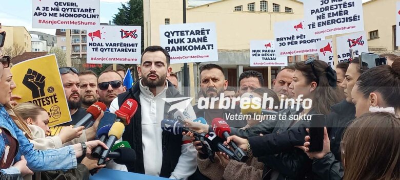 Pjesëmarrësit shihen të mbajnë pankarta me mbishkrime të ndryshme si ‘‘Asnjë cent më shumë’’.