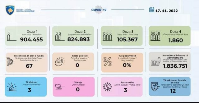 Ministria e Shëndetësisë ka njoftuar se gjatë 24 orëve nuk është as një qytetarë nuk ka rezoltuar pozitiv.