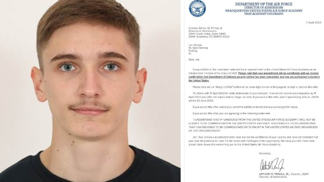Jon Musliu, Atomist nga Kosova është pranuar në Akademinë e Forcave Ajrore të SHBA-së (US Air Force Academy).