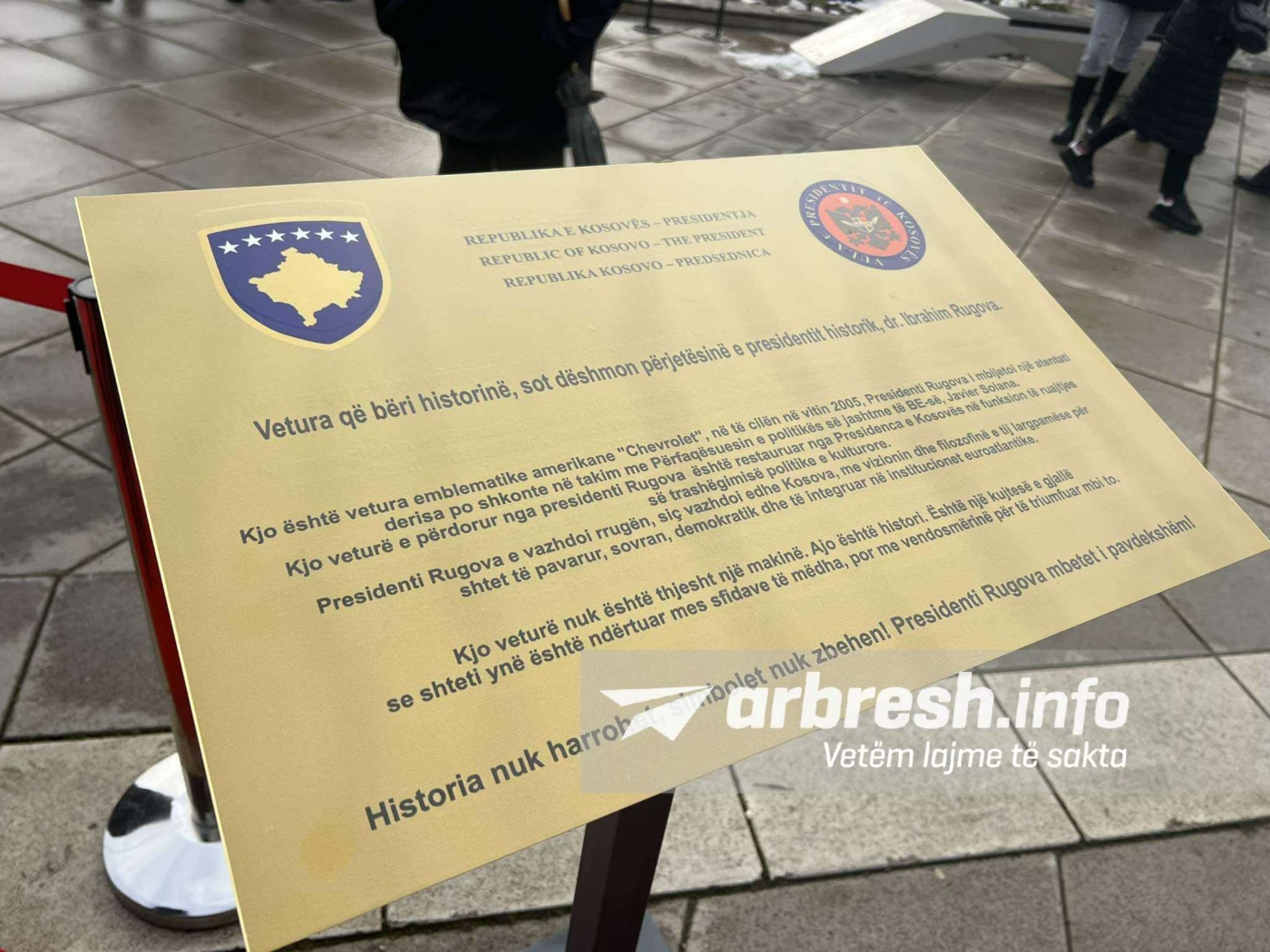 Ekspozimi i automjetit mbahet në sheshin ”Ibrahim Rugova” në Prishtinë, dhe përbën një moment të rëndësishëm për nderimin e trashëgimisë dhe kontributit të tij në historinë dhe shtetësinë e Kosovës.