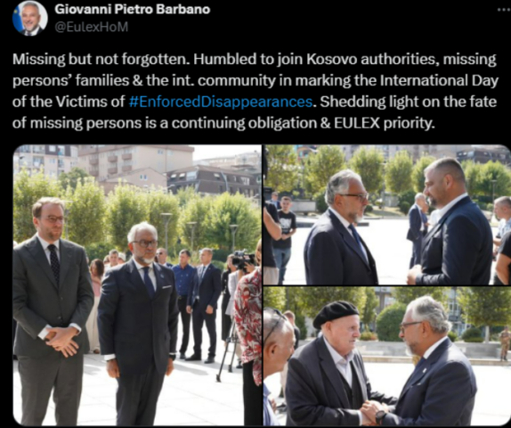 “Ndriçimi i fatit të personave të pagjetur është obligim i vazhdueshëm dhe prioritet i EULEX-it”, ka shkruar ai në X.