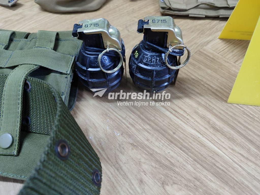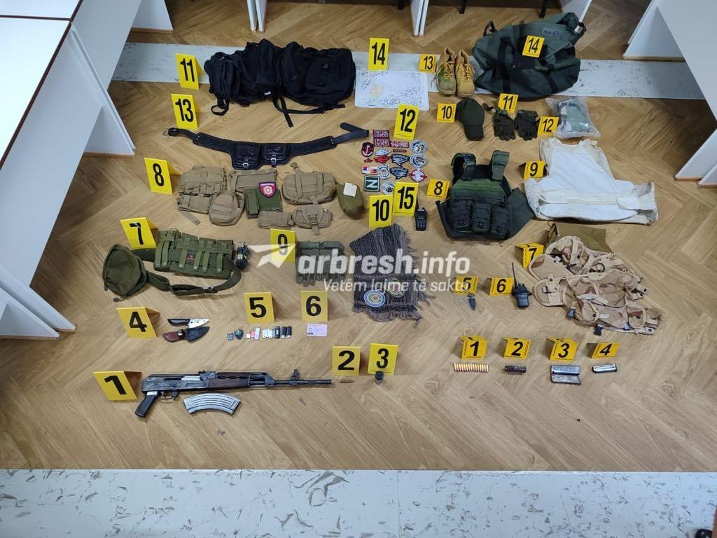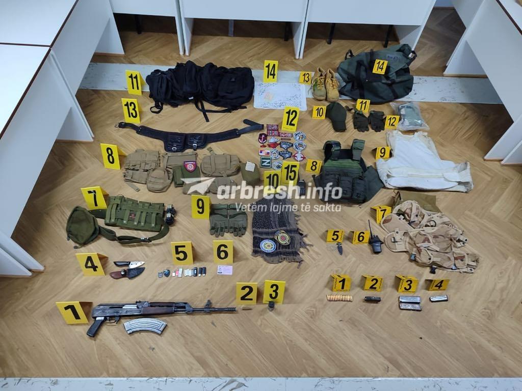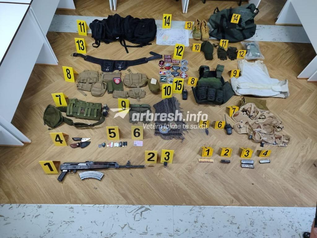 “Sot rreth orës 13.00 pas pranimit të informacionit se në një vend të caktuar në Mitrovica Veri mund të ketë substanca narkotike, Policia e Kosovës ka zhvilluar një bastisje. Gjatë bastisjes në këtë shtëpi Policia ka has dhe ka sekuestruar: 1 AK-47, 2 Granata Dore M-75, 2 Radiolidhje, 2Antiplumba, Kapelë, Dorëza, Çanta Ushtarake, Karikator të zbrazët e të mbushur me fishekë të pistoletës, Harta, Rrip brezi, Sprej, Thikë, Shall kamufllazhi etj”, ka thënë ai për Arbresh.info.