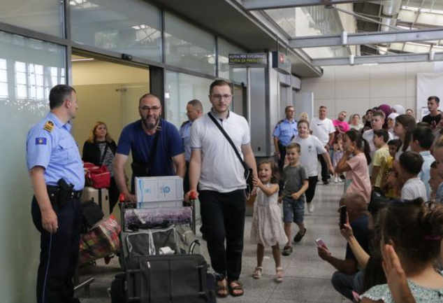 Përveq familjarëve në pritje ka dal edhe kryetari i Bashkësisë Islame të Kosovës, Myftiu Naim ef. Tërnava.