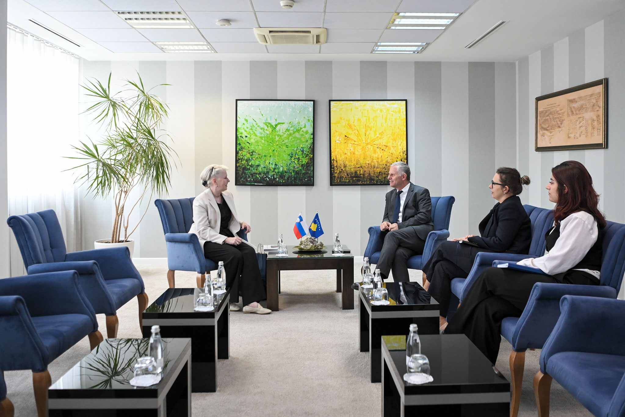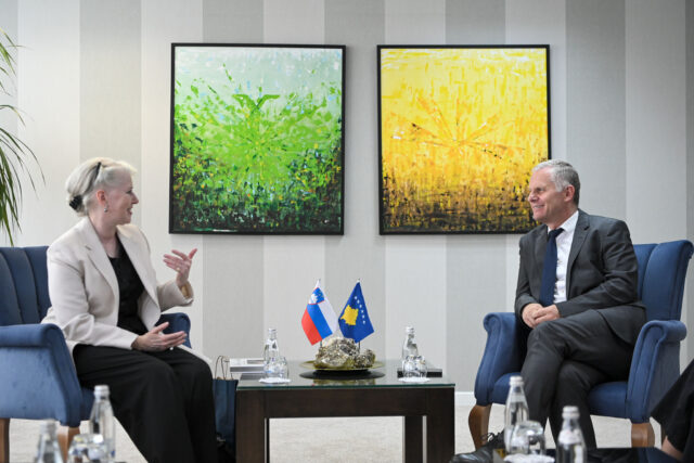 Zëvendëskryeministri i parë në detyrë për Integrim Evropian, Zhvillim dhe Dialog i Republikës së Kosovës, Besnik Bislimi, priti në takim lamtumirës ambasadoren e Sllovenisë në Kosovë, Minca Benedejqiq.