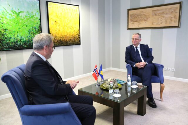 Zëvendëskryeministri i parë për Integrim Evropian, Zhvillim dhe Dialog i Republikës së Kosovës, Besnik Bislimi, priti në takim Përfaqësuesin Special të Norvegjisë për Ballkanin Perëndimor, Haakon Blankenborg.