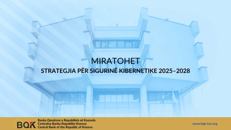Bordi Ekzekutiv i Bankës Qendrore të Republikës së Kosovës (BQK) ka miratuar Strategjinë e Sigurisë Kibernetike për periudhën 2025-2028, e cila është në përputhje me objektivat e Planit Strategjik të BQK-së për krijimin e një kornize rregullative dhe mbikëqyrëse që adreson rreziqet kibernetike dhe forcon kapacitetet operacionale të institucionit.
