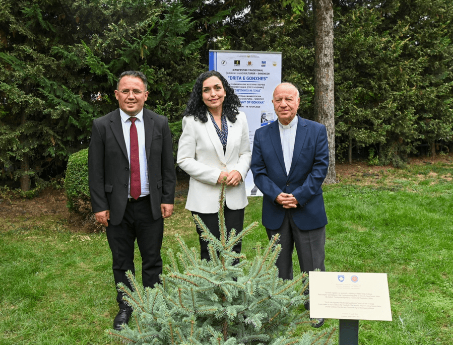 Presidentja e Kosovës, Vjosa Osmani, në kuadër të manifestimit tradicional “Ditët e Nënë Terezës”, bashkë me drejtorin e Institutit të Trashëgimisë Shpirtërore dhe Kulturore të Shqiptarëve- Shkup, Skënder Asani dhe biografin e Nënës Terezë, Dom Lush Gjergji, sot në oborrin e Presidencës së Kosovës, në kujtim të Shën Terezës, mbollën bredhin me farat e bredhit të shkatërruar të Nënë Terezës.
