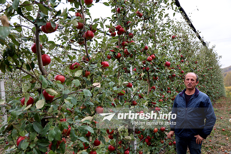 “Në tersi janë të mbjellura diku 34 mijë fidanë, mbizotëron molla, janë diku nëntë hektar me mollë, dy hektarë me dardhë dhe një hektarë me qershi, por në totalë janë diku 34 mijë. Është një aktivitet ekonomik i bazuar në praktikat moderne gjermane, është një mbjellje e pemishtes intensive. Investimet këtu janë dy e treta kosovare ndërsa një e treta gjermane. Përndryshe kjo pemishte ka një kapacitet deri në 700 ton prodhim pra 700 mijë kilogramë fruta”, thotë ai.