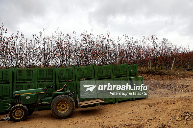 “Ne tash kemi filluar me vjeljen e tyre, jemi pothuajse gati në përfundim. Vjelja ka filluar gati që një muaj. Ne i trajnojmë punëtoret tanë se si të bëhet vjelja e pemëve. Këtu vjelja bëhet me dorë, por edhe askush nuk ka sjellë ndonjë makineri për vjelje automatike, edhe pse tash flitet që kanë filluar edhe të prodhohen edhe robotët e parë që mund të vjelin, por tash e gjithë vjelja bëhet me dorë nga njerëzit”, tregon fermeri.