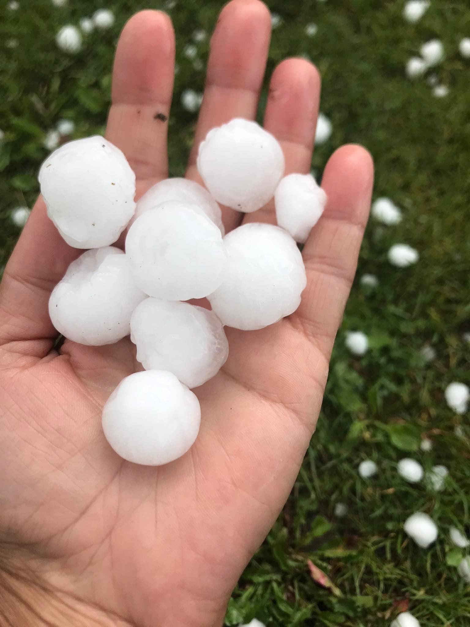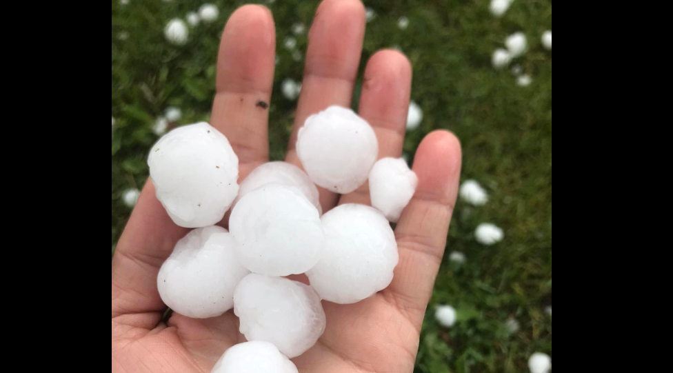 Në mediat lokale po qarkullojnë foto, ku shihet se breshëri ka madhësi gjigante, shkruan arbresh.info