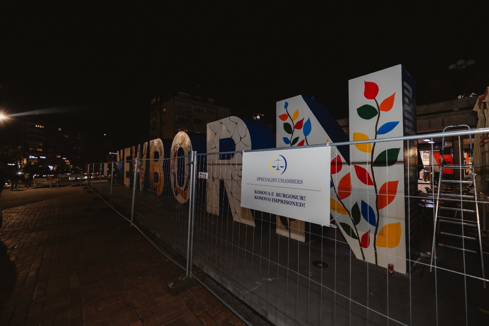 Në këto rrethoja është vendosur edhe tabela me logon e Dhomave të Specializuara, me mbishkrimin: Kosova e burgosur!
