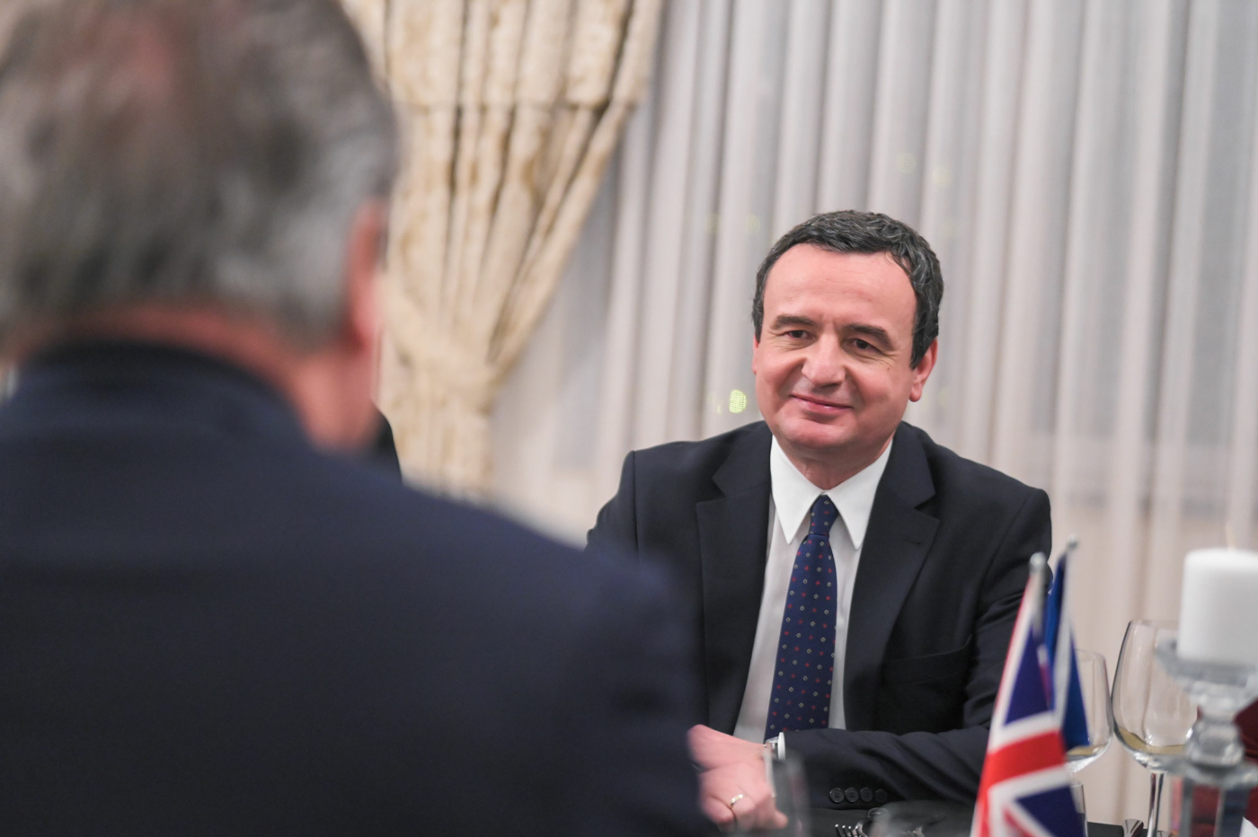 Kryeministri i Republikës së Kosovës, Albin Kurti mirëpriti sot në një darkë pune Sekretarin e Punëve të Jashtme të Mbretërisë së Bashkuar, Lord David Cameron, i cili po e viziton Kosovën për herë të parë.