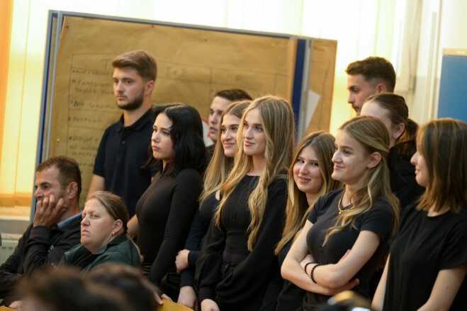 “Ky model ndërthur teorinë me praktikën dhe i afron të rinjtë me tregun real të punës. Ka filluar në vitin 2022 në 4 shkolla, në katër profile të ndryshme, në 3 komuna të Kosovës, duke përfshirë 107 nxënës, të cilët besuan në këtë rrugëtim të ri”, u shpreh kryeministri në fjalën e tij.