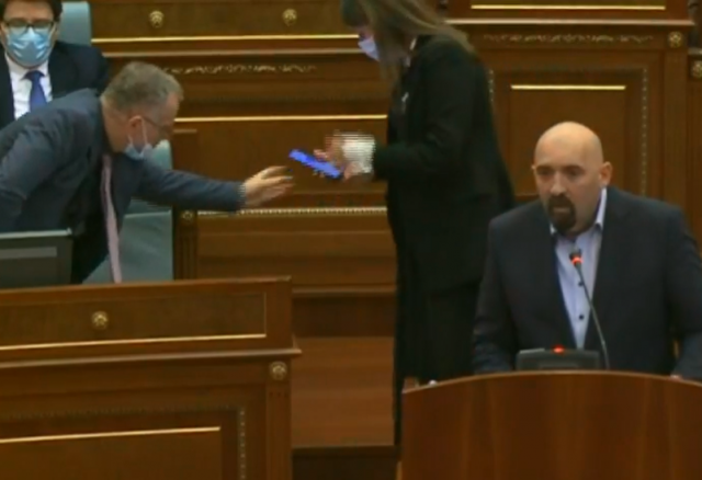 Ministrja e Drejtësisë, Albulena Haxhiu, ka mbetur e shtangur për disa minuta në seancën e sotme të Kuvendit. Kjo pasi zëvendëskryeministri, Besnik Bislimi, e thirri dhe i tregoi diçka në telefonin e tij.