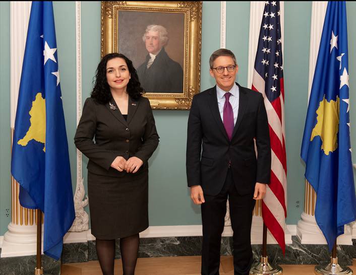 Këshilltari në Departamentin Amerikan të Shtetit, Derek Chollet ka pritur në takim presidenten e Kosovës, Vjosa Osmani.