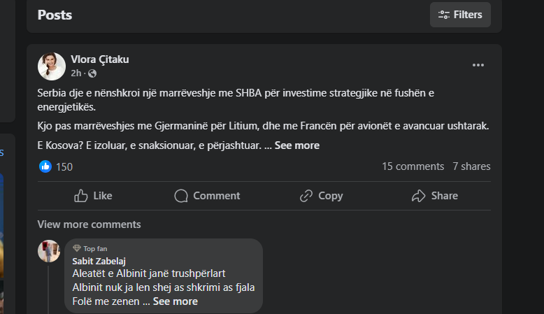 Çitaku këtë deklaratë e bëri në një postim në Facebook, raporton Arbresh.info.