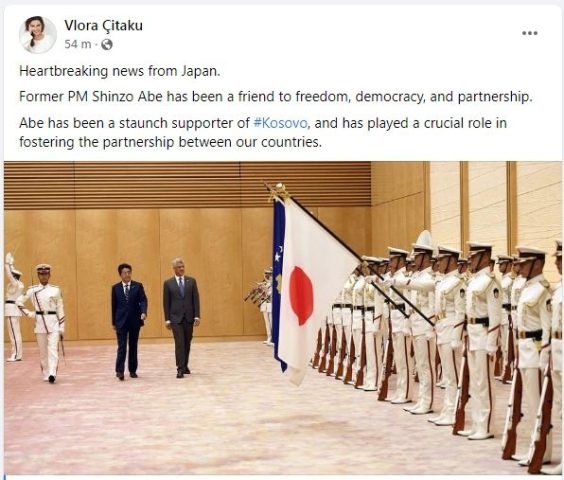 Për plagosjen e ish kryeministrit japonez Shinzo Abe, ka reaguar edhe ish ambasadorja në SHBA Vlora Çitaku.
