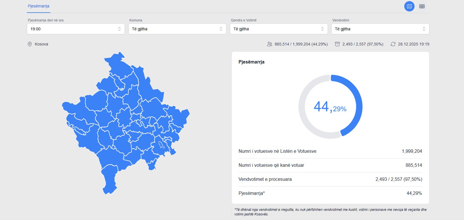 Bazuar në këto të dhëna të publikuara në platformën e KQZ-së, del se dalja është më e lartë se në zgjedhjet e 9 shkurtit, kur brenda vendit deri në orën 19:00 kishin votuar 39 për qind e trupit votues.