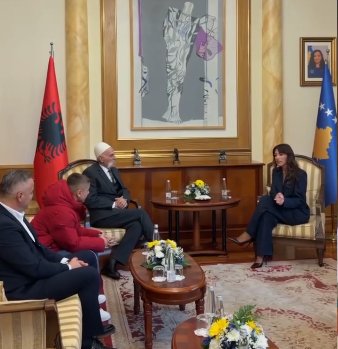 Kryetarja e Kuvendit të Kosovës, Albulena Haxhiu para nisjes së seancës solemne ka pritur në takim bacën Rifat Jashari.